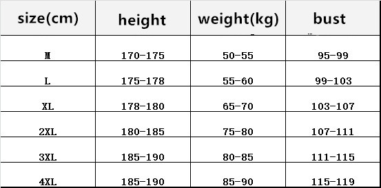 Size: M, L, XL, XXL, XXXL, XXXXL